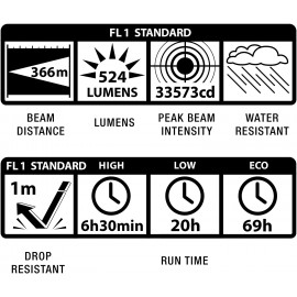 L’implementato sistema Quick Focus permette di ottenere velocemente un potente fascio luminoso con messa a fuoco con rotazione della testa di 1⁄4 di giro.